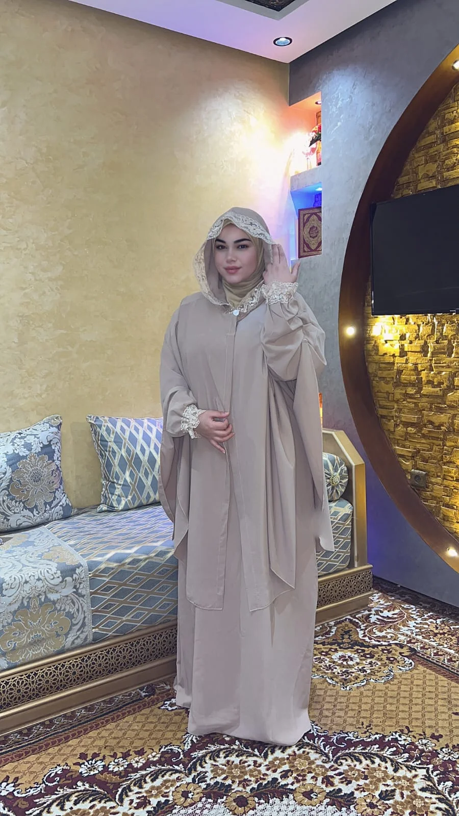 تبارك الله على هاد العباية، خديتها على قبل العمرة وجاتني غزالة بزااف. التوب ديال الكريب طايح وبارد مكتحسيش كاع بالصهد، والسلهام كيعطي واحد الوقار والحشمة ما شاء الله. الله يعطيك الصحة